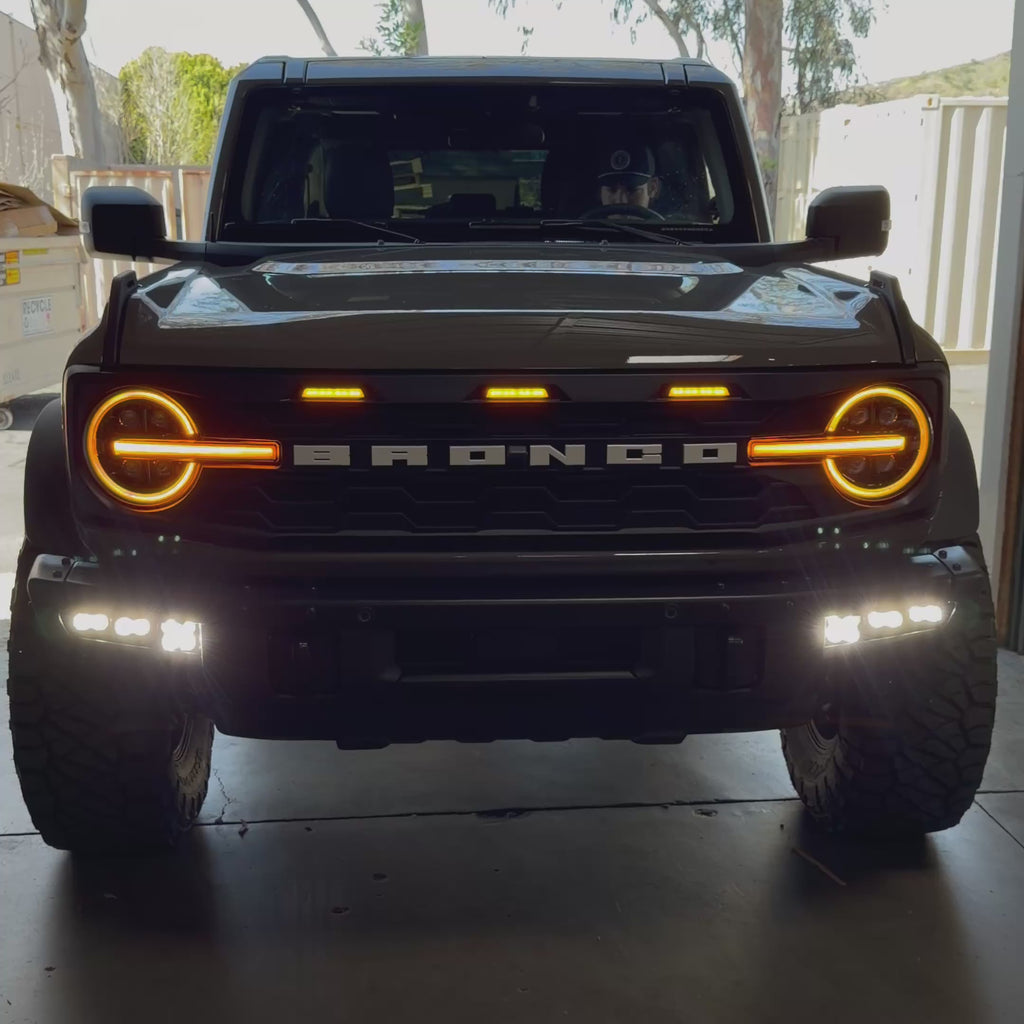 Upgrade the look and lighting performance of your Ford Bronco with this aggressive new headlight package, designed to provide improved visibility while giving your Bronco a bold, modern front-end appearance. Whether you choose the quad projector or dual projector version, both options feature the same great specs and the same ability to switch between white or amber daytime running lights depending on your preferred style.
